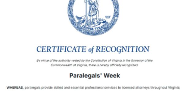 The Governor of Virginia has recognized October 5-11, 2025 as Paralegals' Week in the Commonwealth of Virginia.
